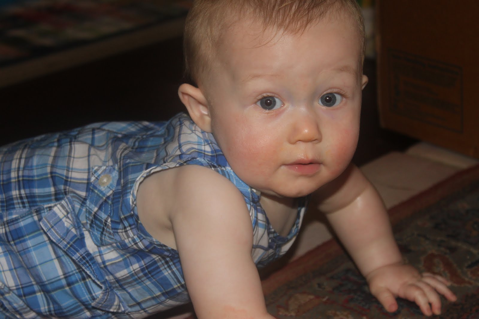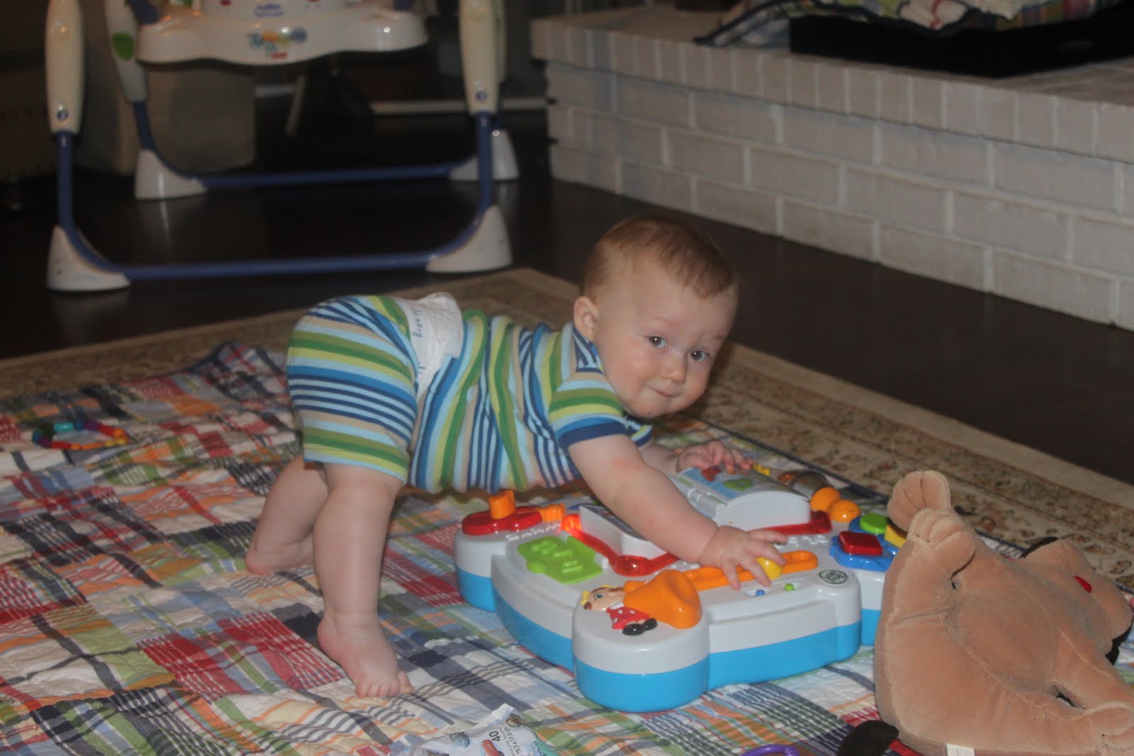 Well, I guess you could say that Sonny is a ladies man!!! Michael, my brother and I took him out to eat for Cinco de Mayo and he was a hit. We sat out on the patio so we could be sure and have lots of room to play and you know to set up camp...haha! Women were coming over from all over the restaurant to say hi and talk to him...and a couple of ladies even asked to hold him while we ate our dinner. Maybe it was this cute little face and smile that they couldn't resist....or his festive shirt! We had a great night with lots of laughs...