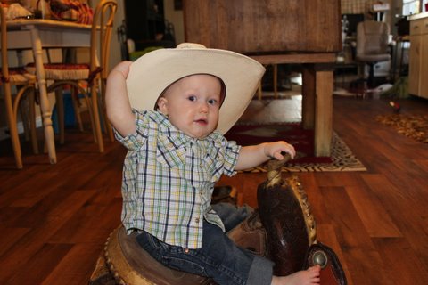 We had a fun weekend at Paw and Tracey's house in the country. We had a great road trip and lots of fun playing with the hay bales, climbing the fences, swimming and taking pictures on my saddle from when I was a kid. Oh, and I forgot the trip to Brenham to the Blue Bell Ice Creamery, where we tasted lots of delicious Blue Bell flavors. Maybe next time we can ride a pony....until then I am lovin my little cowboy Sonny:)